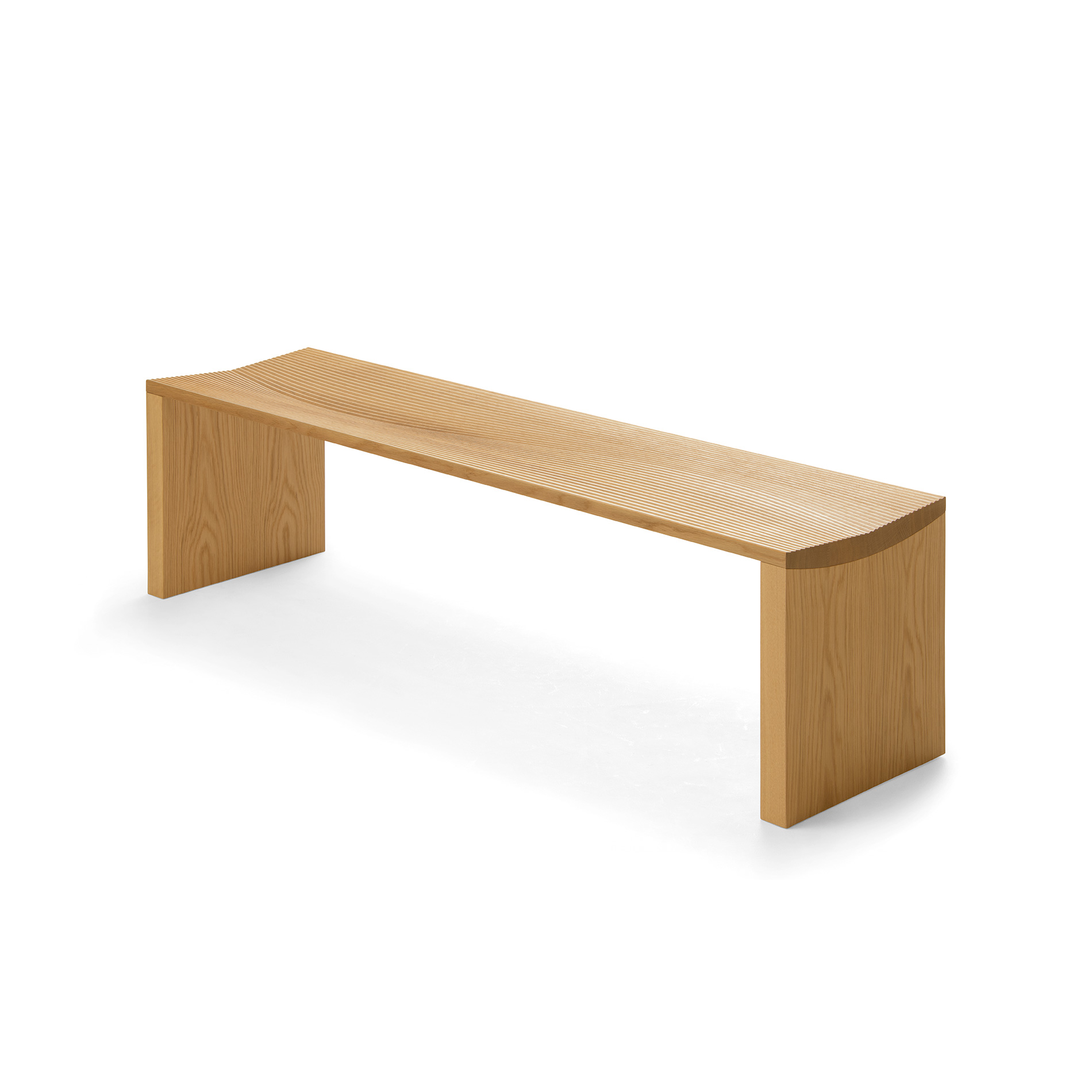 This solid wood bench was designed by Riki Watanabe, one of Japan's leading product designers. It is characterized by its rich wood texture, strong form, and neat expression. The gently curved surface of the seat enhances the comfort. There are more design ideas appearing in detail to share, such as the shape of the seat edge, the slits, etc.