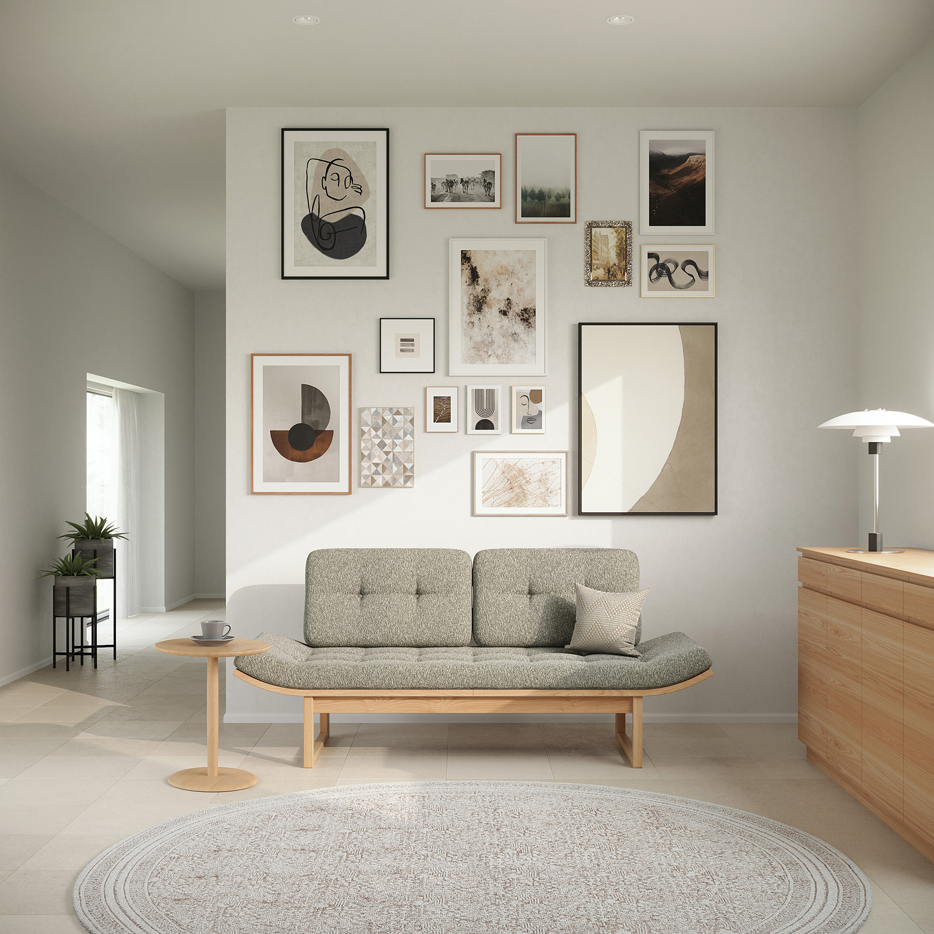 This unique shaped sofa with its curved seating is one of the long-life products of CondeHouse. For the lifestyle of Japanese people, this sofa, good to dine and sleep on, is perfect because the boundaries are blurred between dining and living rooms.