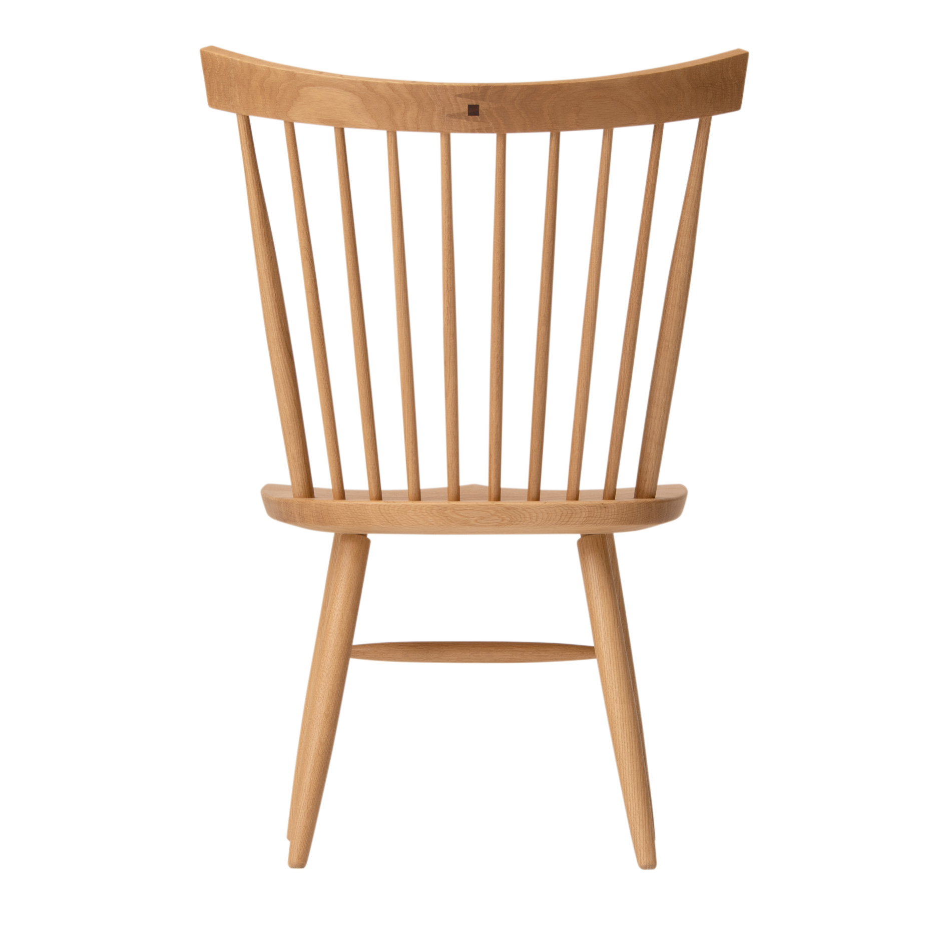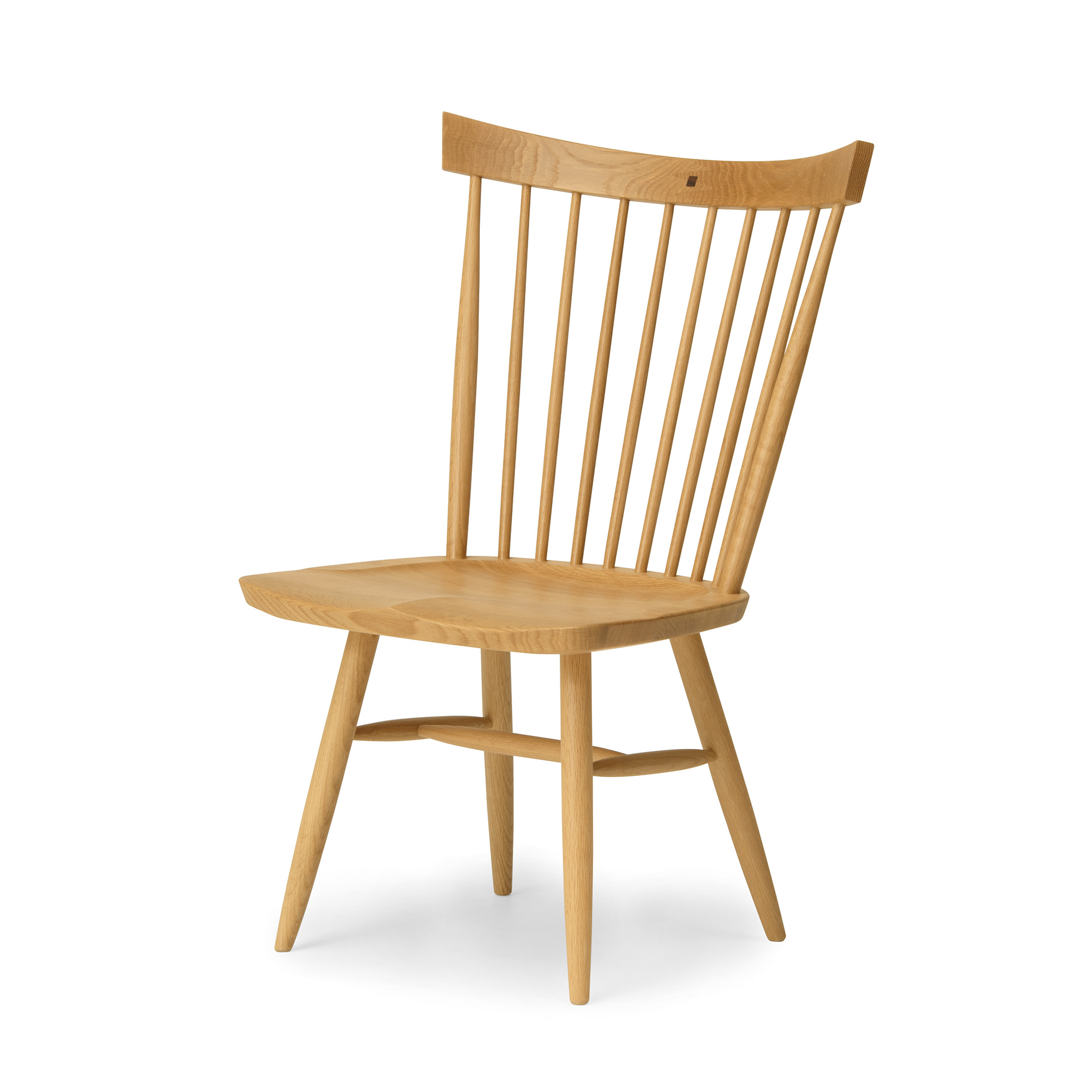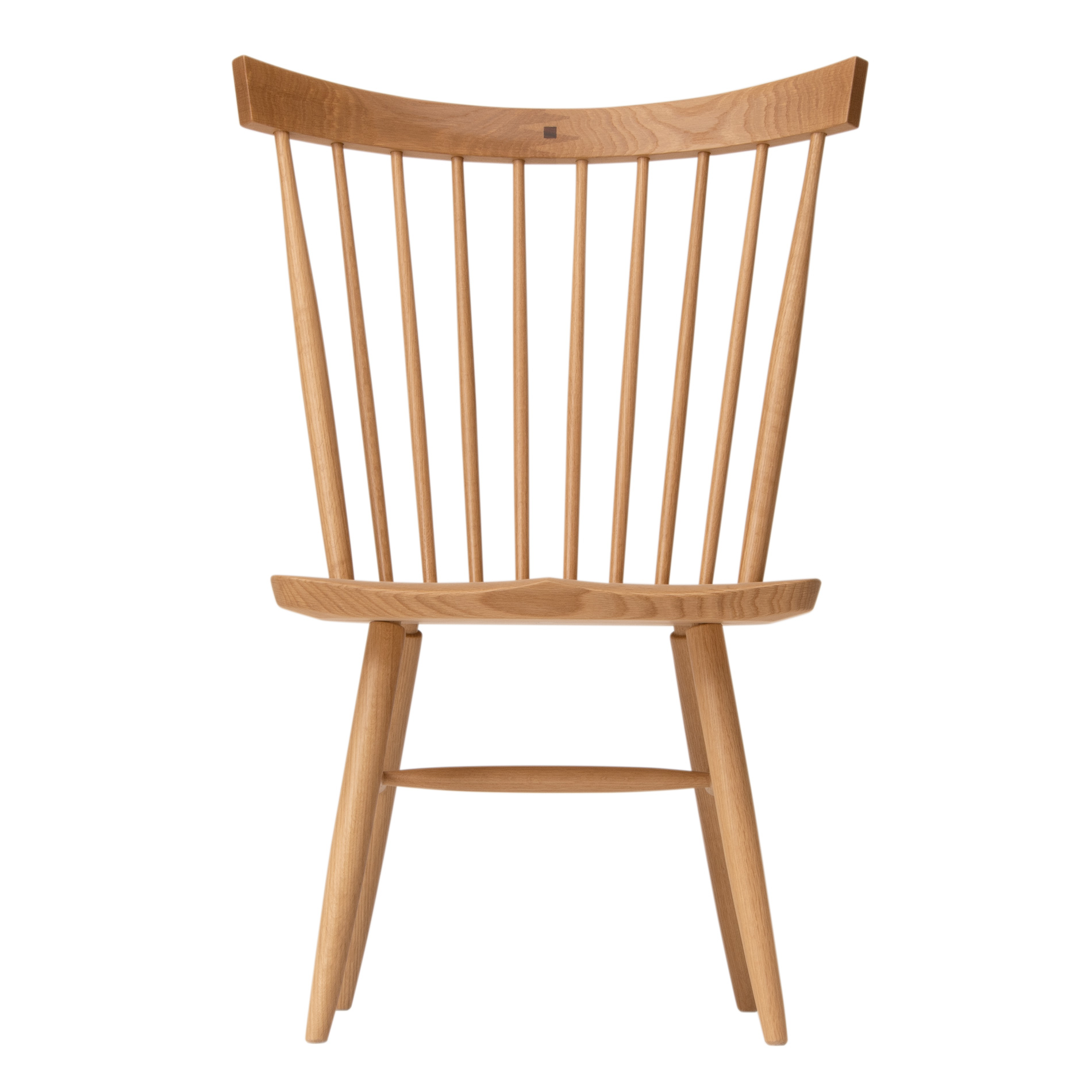 Riki Windsor is a traditional English Windsor chair that has been redesigned to suit the Japanese physique and living environment from Riki Watanabe's particular perspective. The chair is the result of a sophisticated fusion of beauty and technology, such as the back spokes of varying thickness, the frame penetrating through the seat from the arm to the leg beam, etc.