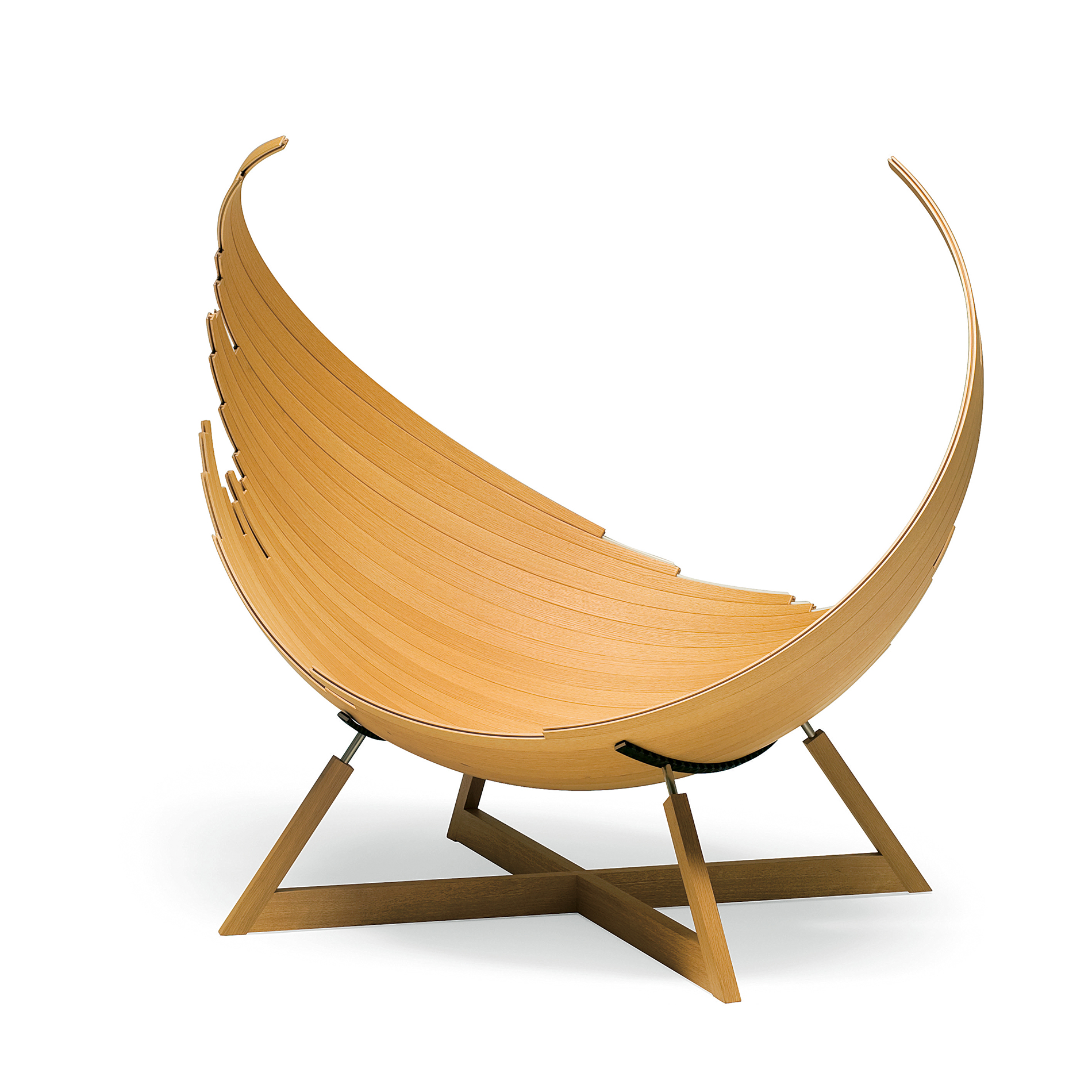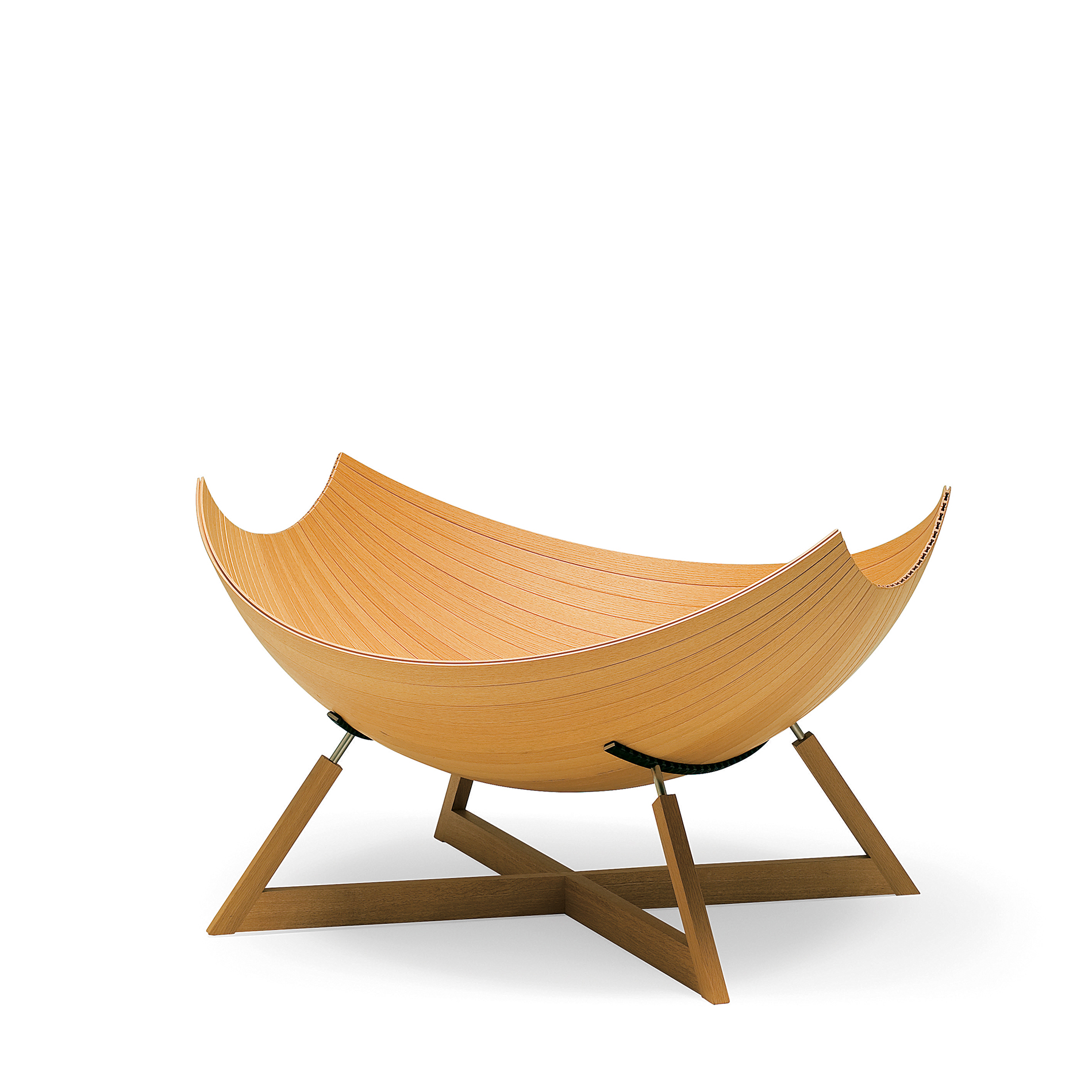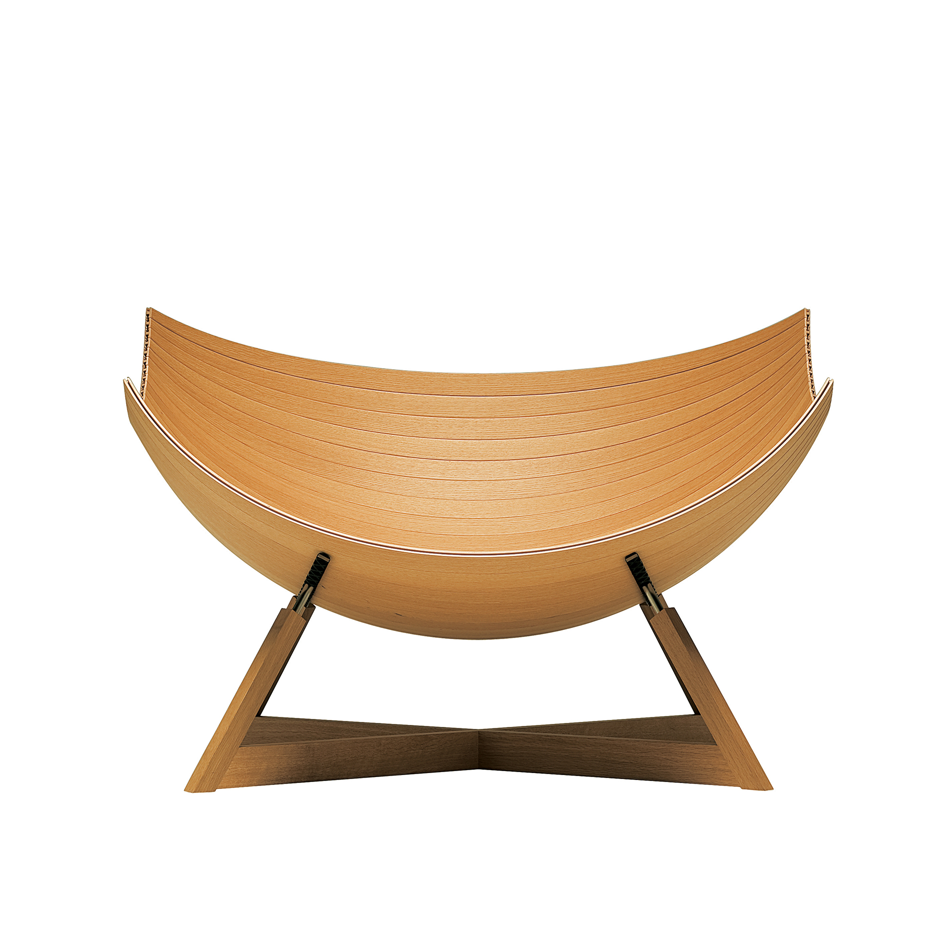 Barca means a boat in Italian. The shape of the shell looking like a boat can change as you wish by moving the 28 pieces of sliding boards consisting of the shell. It was a big challenge: the sliding boards must move smoothly but maintain a posture at the same time. The chair won the best prize in International Furniture Design Competition in Asahikawa 2008 for its originality, and has grown up to be one of the iconic products to show CondeHouse's enthusiasm for design.