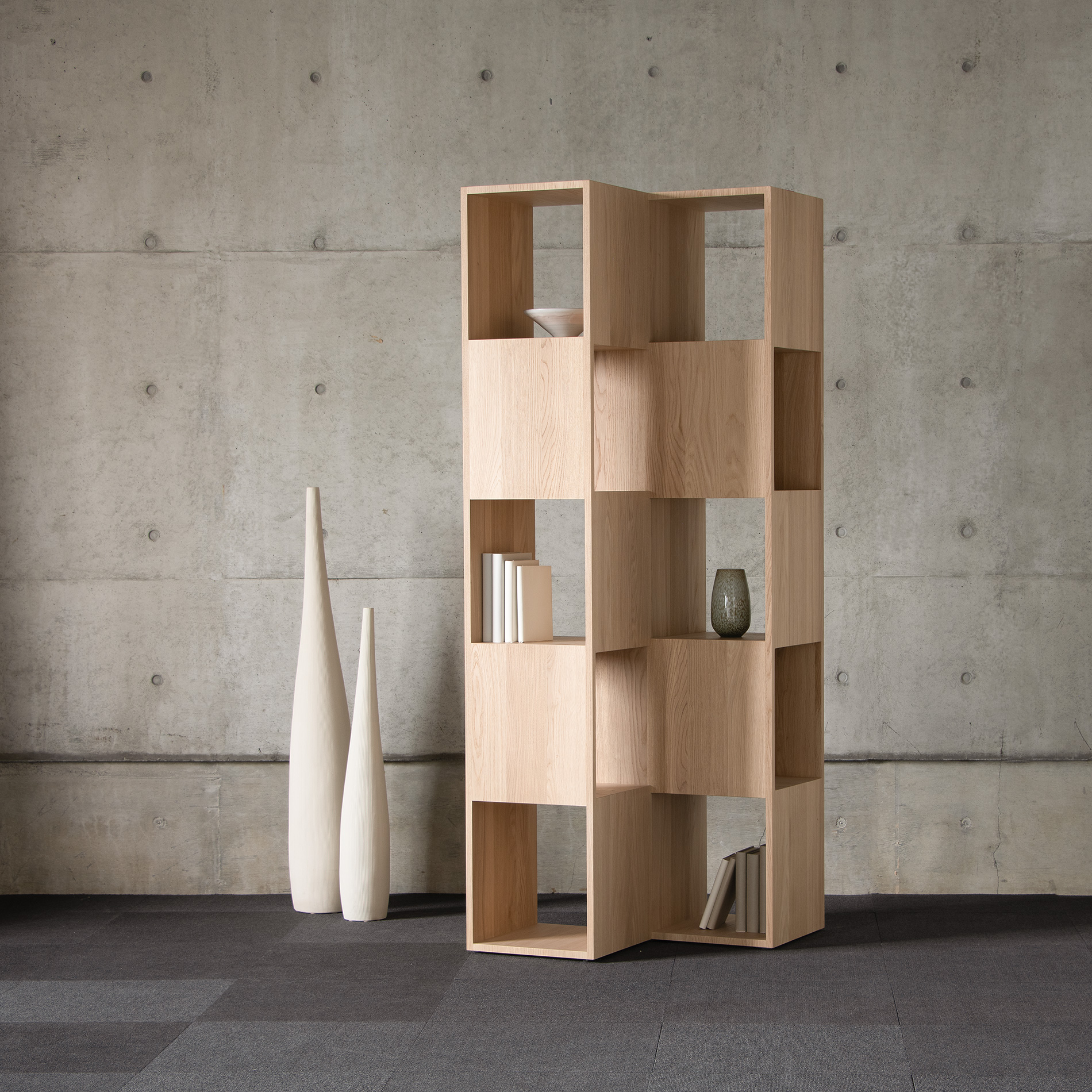 A cabinet inspired by the concept of light and shadow. Each box is carefully crafted and mounted to each other. Designed by a Japanese designer group, nendo, Fold is made of oak and is recommended to be used as a partition in a spacious area.