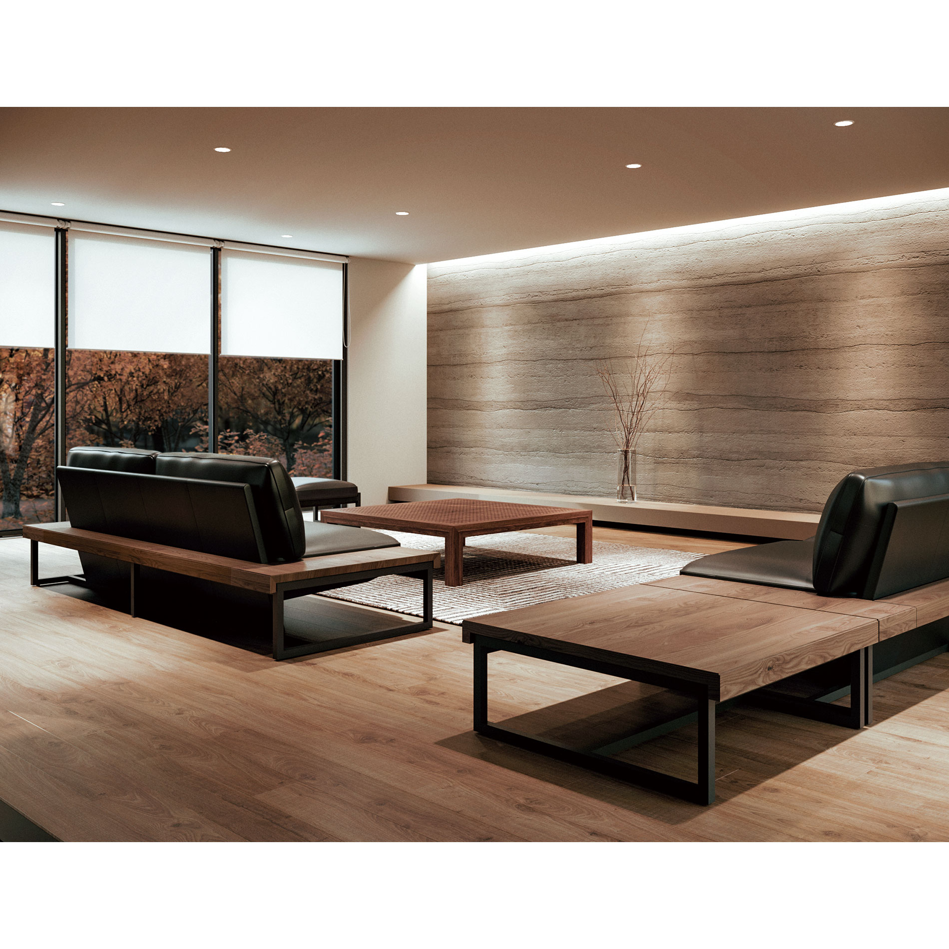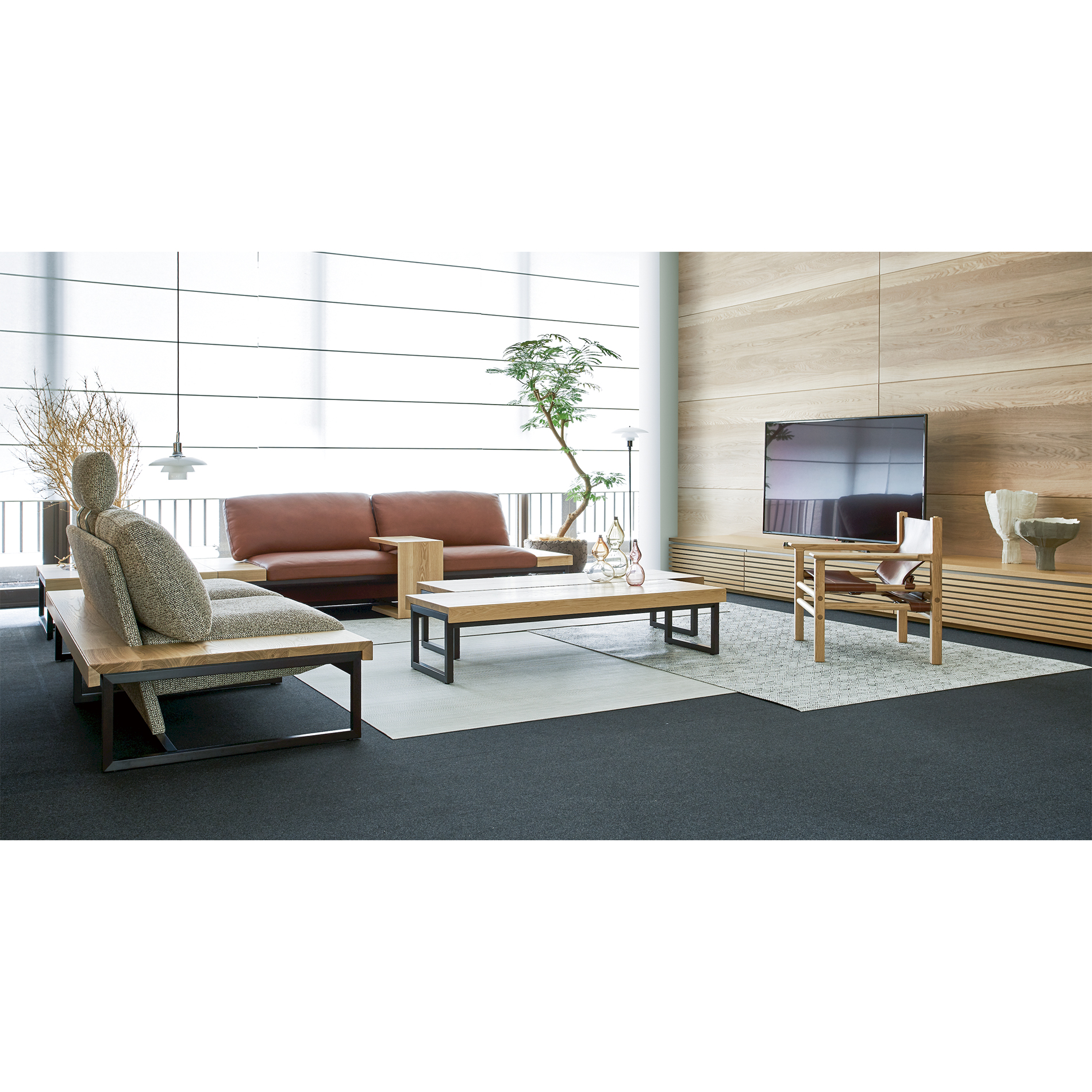 Using as thin wood materials as possible; not hiding structures but showing them as a part of design: these eliminations created the affluent appearance with the carefully selected wood grain and color contrast in wood between the base and upper frame.